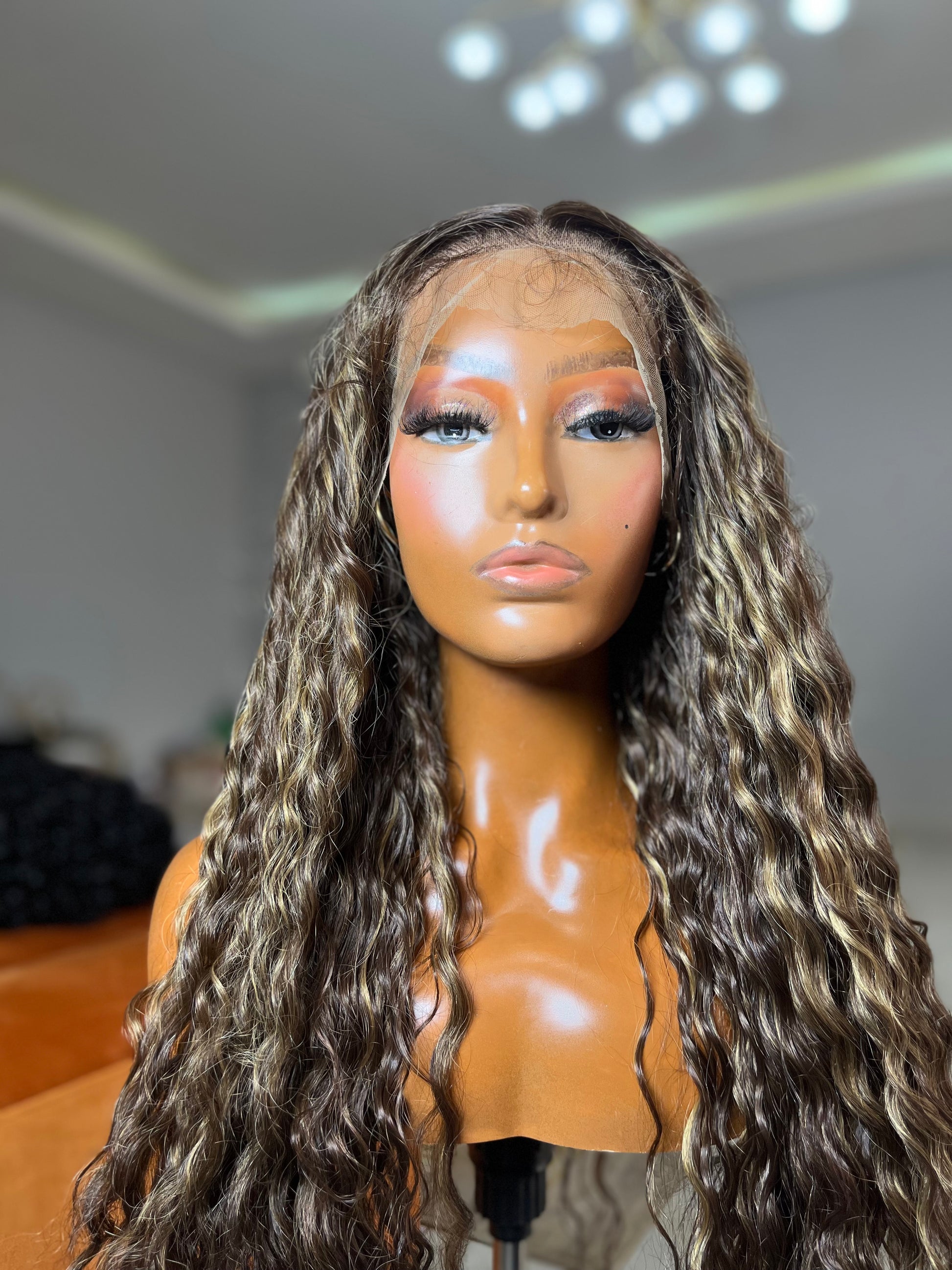 Long, luscious curls in a honey blonde with soft highlights ✨ Perfect for a sun-kissed, glamorous look.