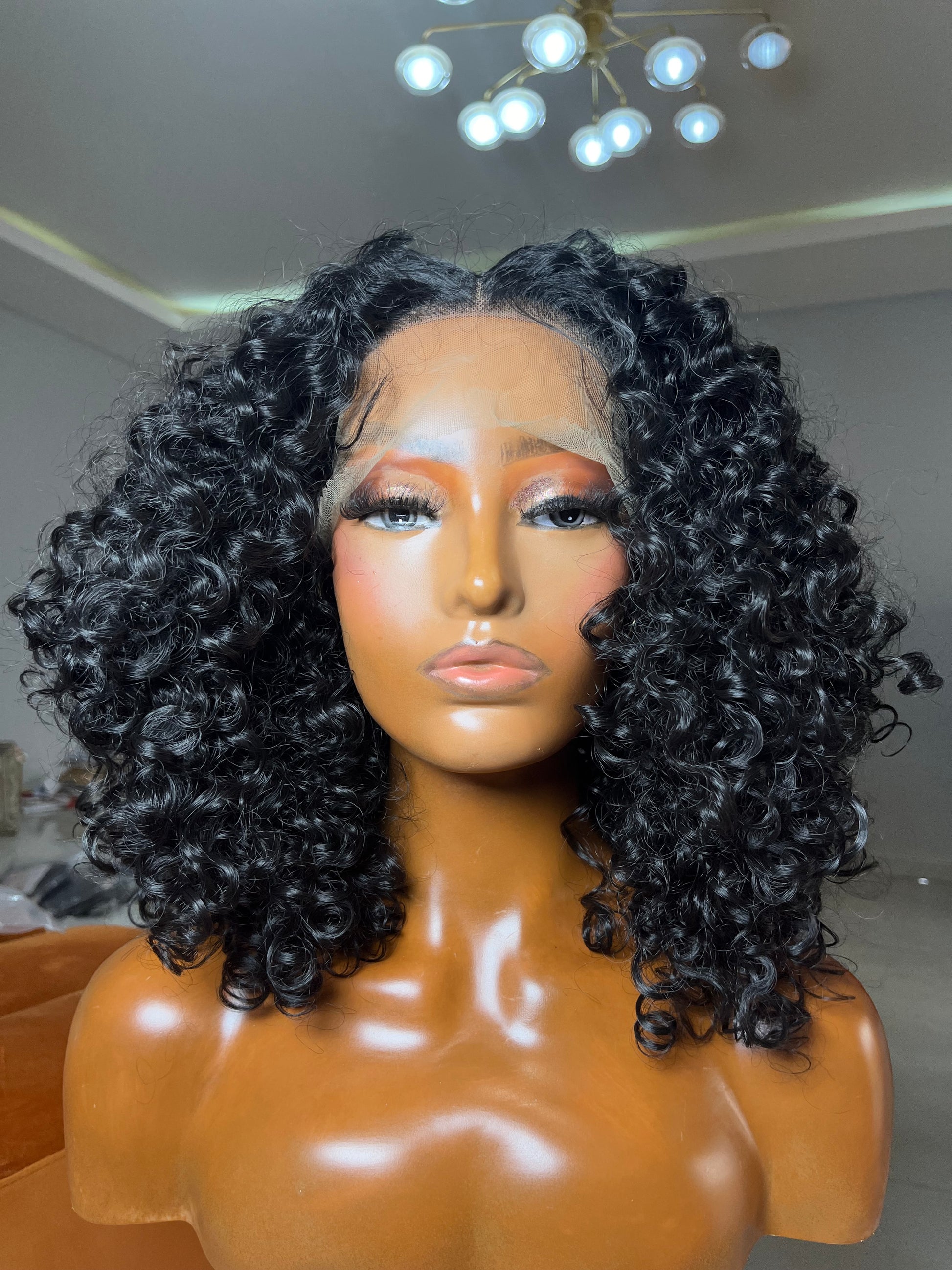 Shoulder-length, tight bouncy curls in classic black 💖 Effortless style with lots of volume and personality.